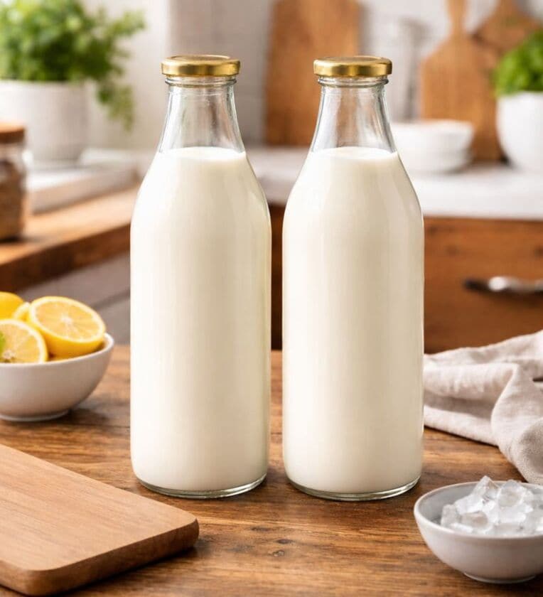 (Pack of 2) 1 Ltr Clear Glass Milk Bottle with Airtight Lid Multipurpose Storage Bottle