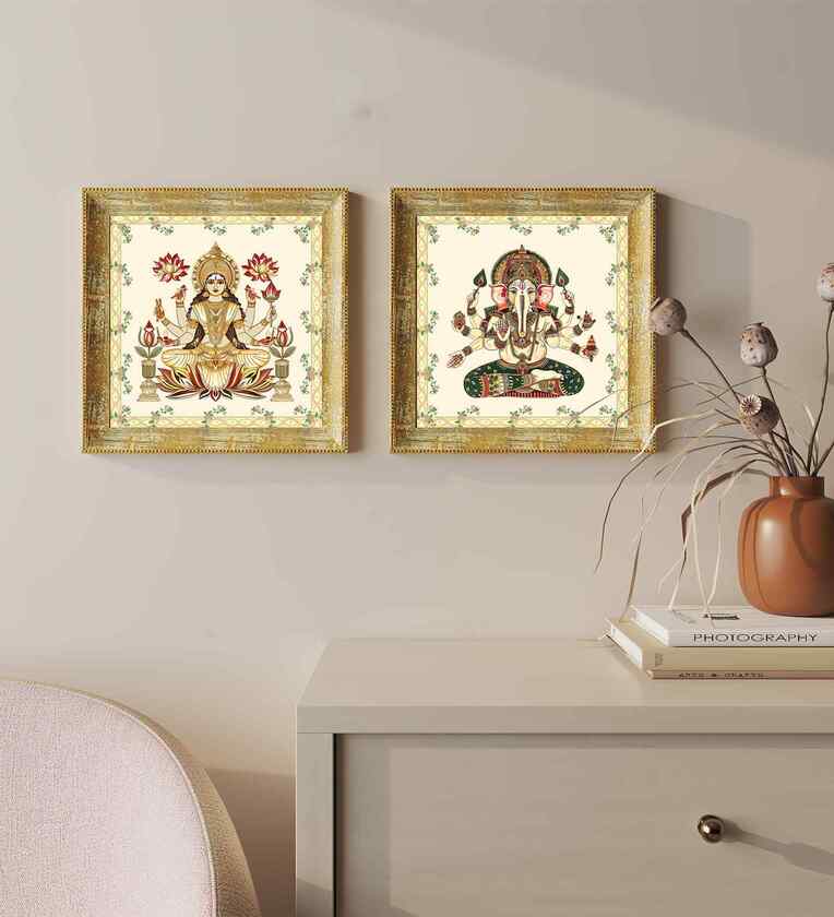 (Pack Of 2) Beige Fibre Hindu Spiritual Wall Art Panels