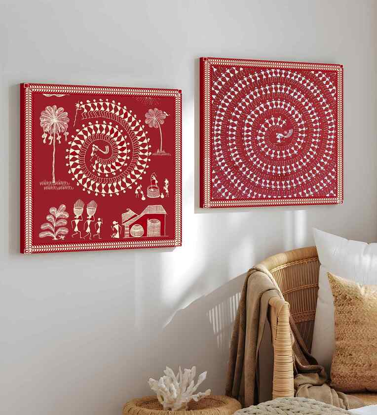 (Pack Of 2) Multicolour Canvas Traditional Indian Wall Art Panels