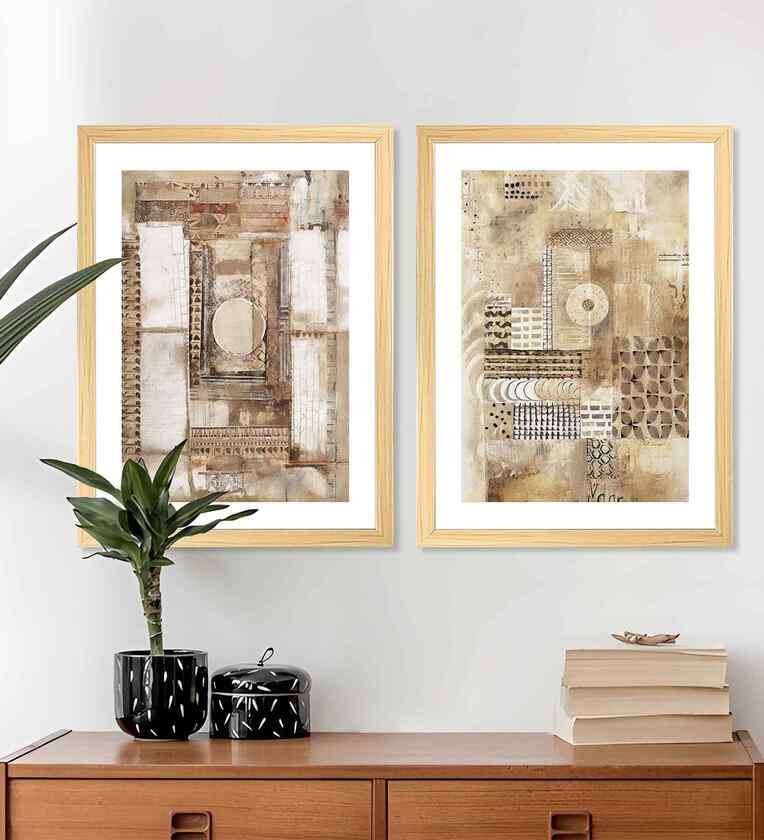 (Pack Of 2) Multicolour Fibre African Collage Wall Art Panels