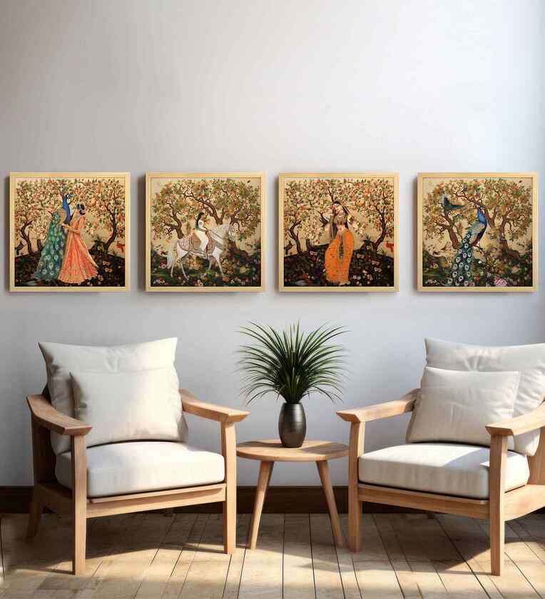 Experience the beauty of tradition with this Madhubani artwork, showcasing women gracefully immersed in a vibrant floral garden. This colorful piece reflects the rich heritage of Indian folk art, blending intricate patterns with symbolic details to create a captivating and culturally resonant decor for your home