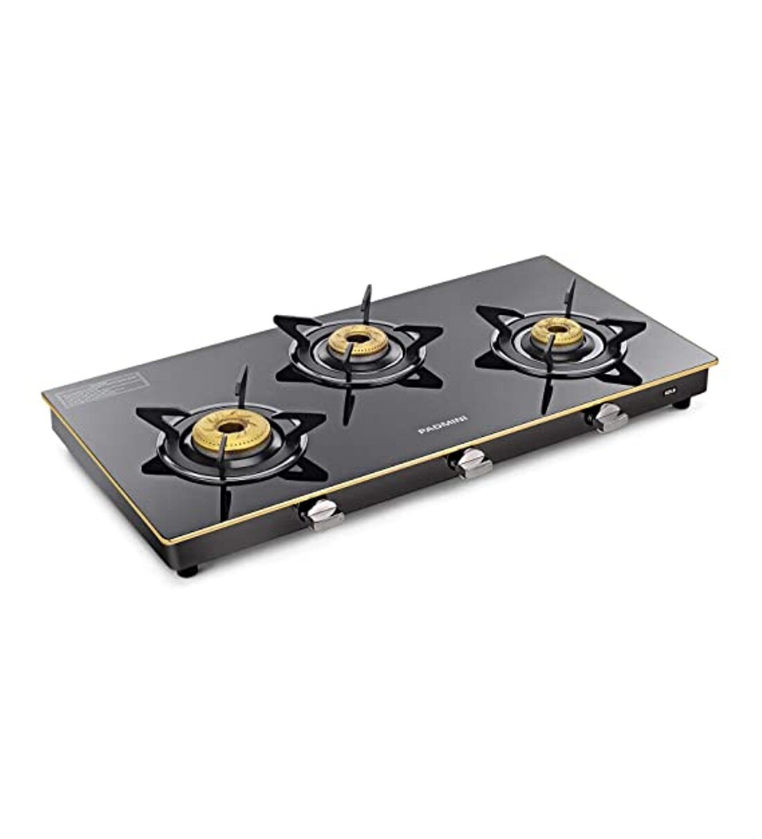 Padmini CS 3GT Gold Auto Ignition 3 Burner Gas Stove (1 HF, 1 Big, 1 Small Burner)