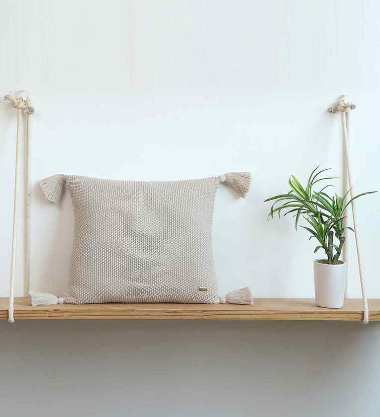 Enhance your decor with Knitted Cushion Cover. This beautifully made Textured cushion cover (No Fill Inside) is expertly knitted in 100% Quality Cotton.