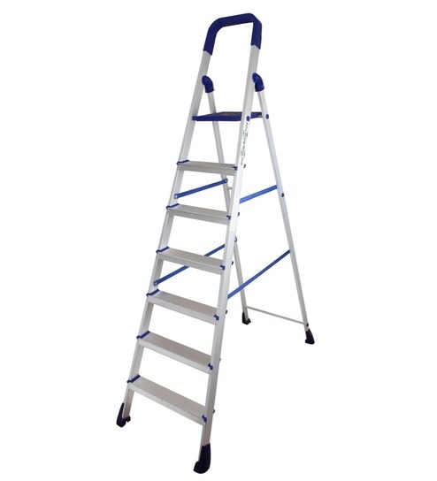 Parasnath folding Aluminium ladder 7 steps made from using high strength Aluminiumal , this ladder from parasnath is ideal and a must have for every household, office, warehouse, shop etc. This product features a corrosion resistant design, which also provides additional safety and support. The product as we know is a folding ladder, it has easy and smooth folding hinge. It comes with a plastic top with anti skid design for better grip and protection. Its long arch gives you support and ensures safety while its wide steps with anti skid pattern prevents you from slipping it operates conveniently which can be folded flat for saving store space when not in use.