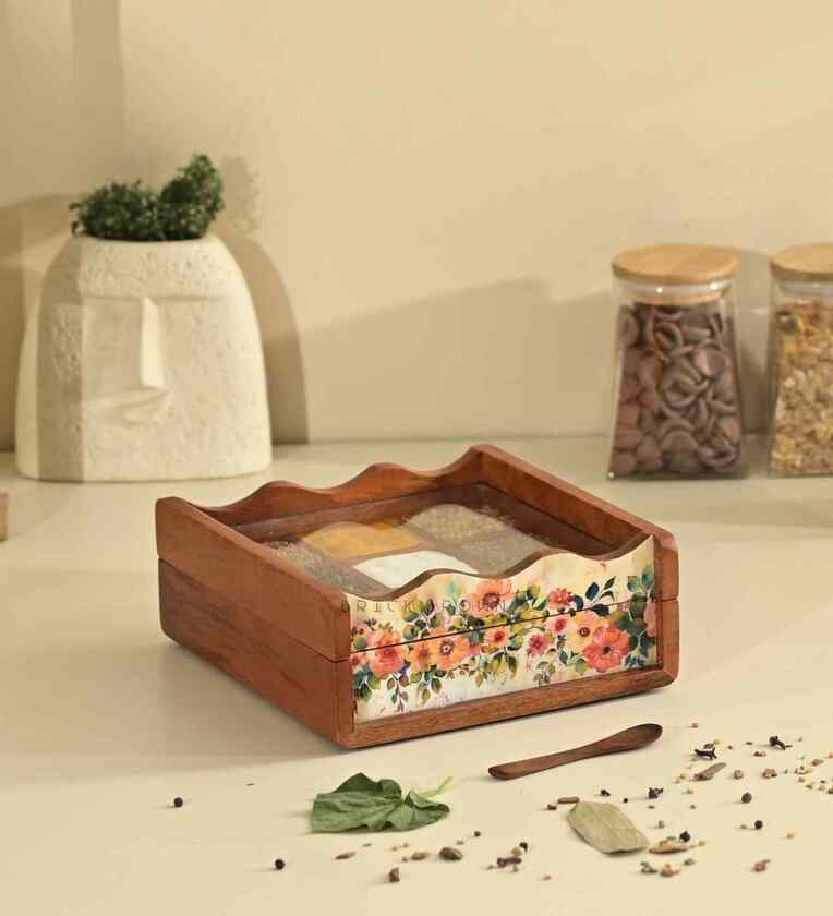 Bring order and calm with the Pastel Flora Nava Masala Box�where spice meets serenity in elegant curves and florals.