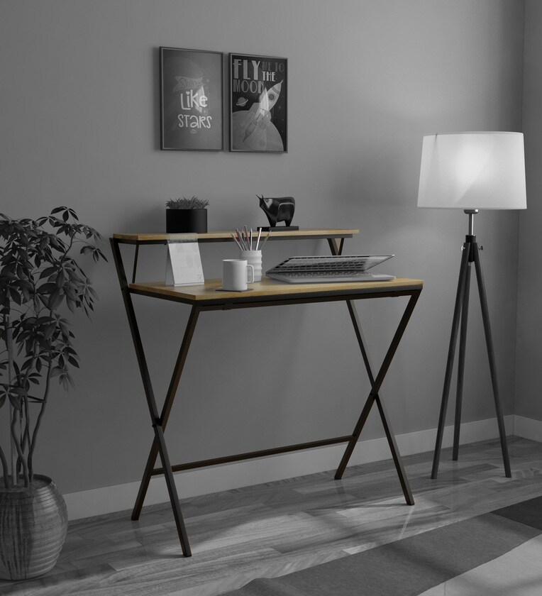 Patron Solid Wood Folding Study Table In White Wash Finish