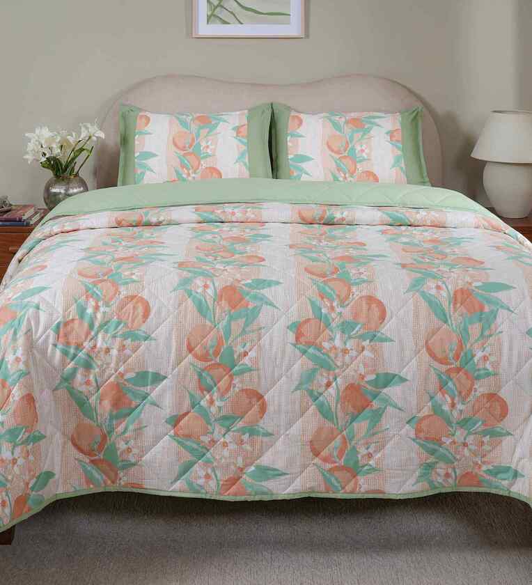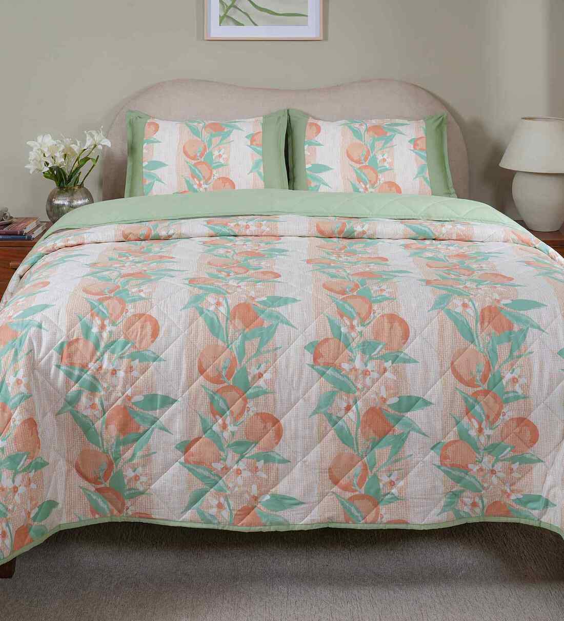 Peach Cotton Polyester Fruit Print 115 GSM Single Bed Quilt