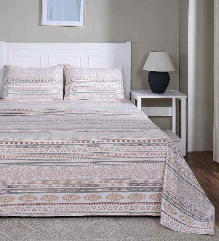Peach Geometric Print 144 TC Cotton Double Bed Sheet with 2 Pillow Covers Sensory Bloom Collection