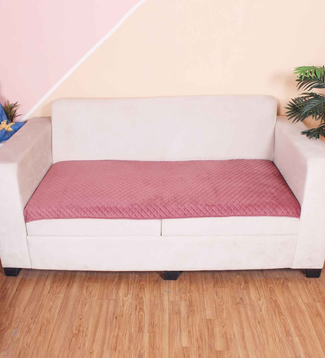 Peach Solid Velvet 3 Seater Quilted Sofa Cover (Protector)