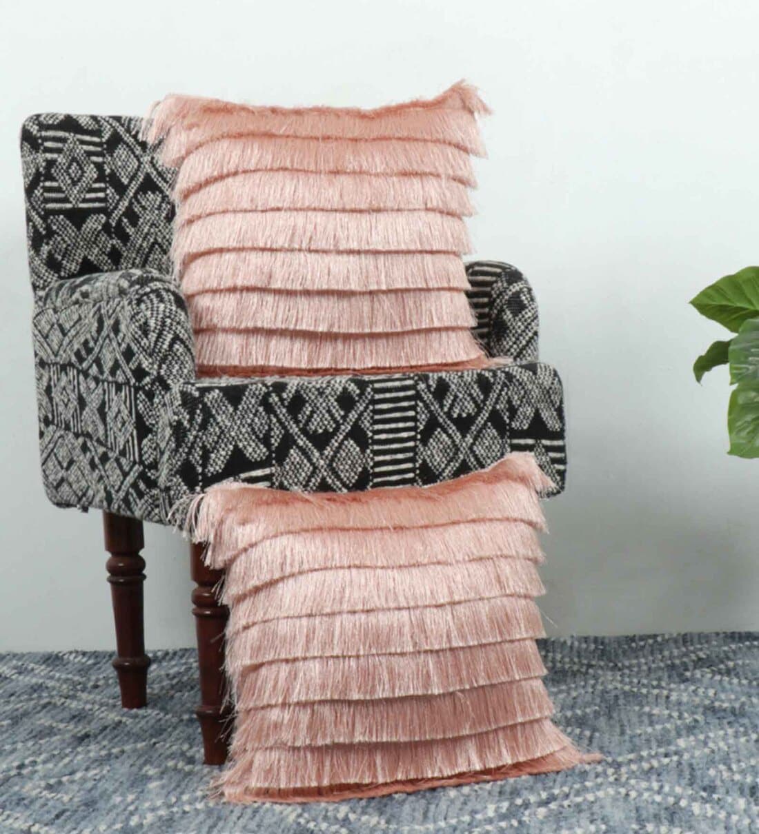 Peach Textured Cotton 16 x 16 Inches Cushion Covers (Set of 2)