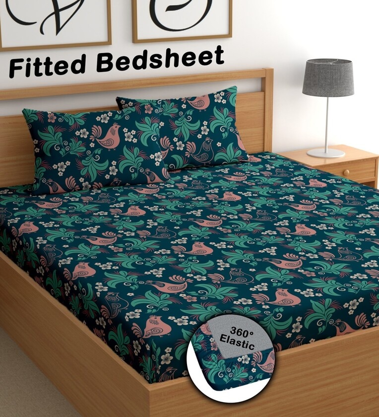 CG Homes Cotton Double Fitted 180 TC Printed Bedsheet