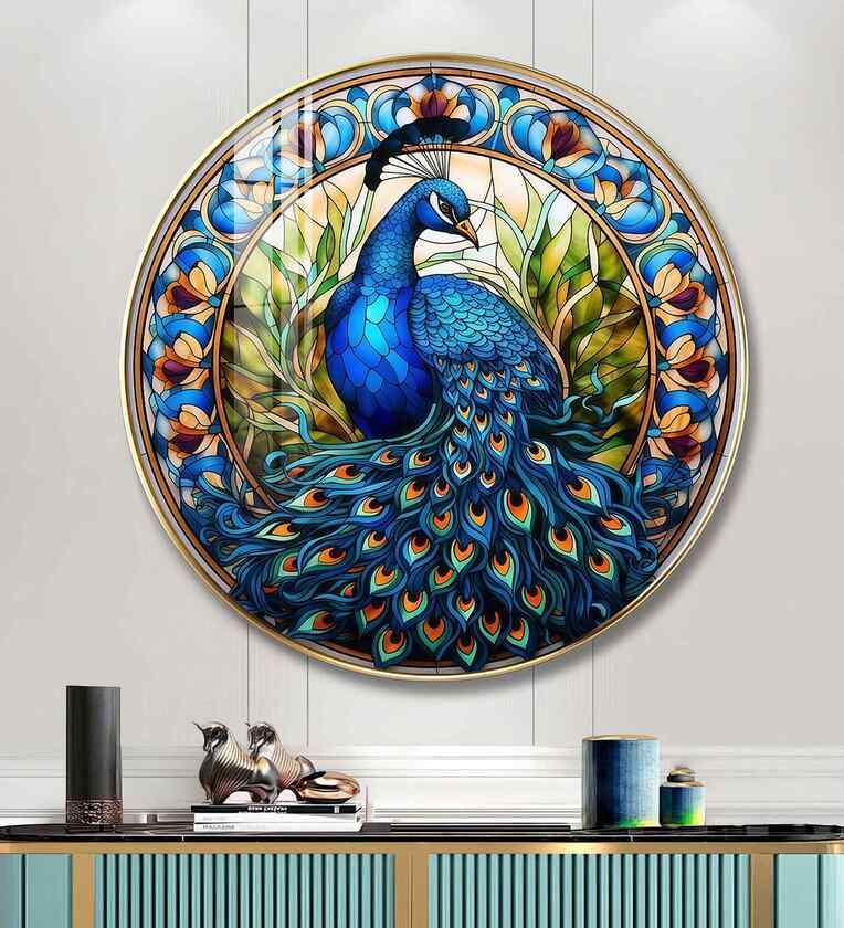Bring home the timeless elegance of nature with our Peacock Majesty Wood Glass Finish Round Wall Art . The vibrant hues and intricate detailing of the design, a perfect balance of grace and grandeur, making it a captivating centerpiece for your living room, hallway or bedroom. Designed to symbolize prosperity, beauty, and positivity. High-definition print, Durable long-lasting quality material wall art perfect for modern and traditional interiors
