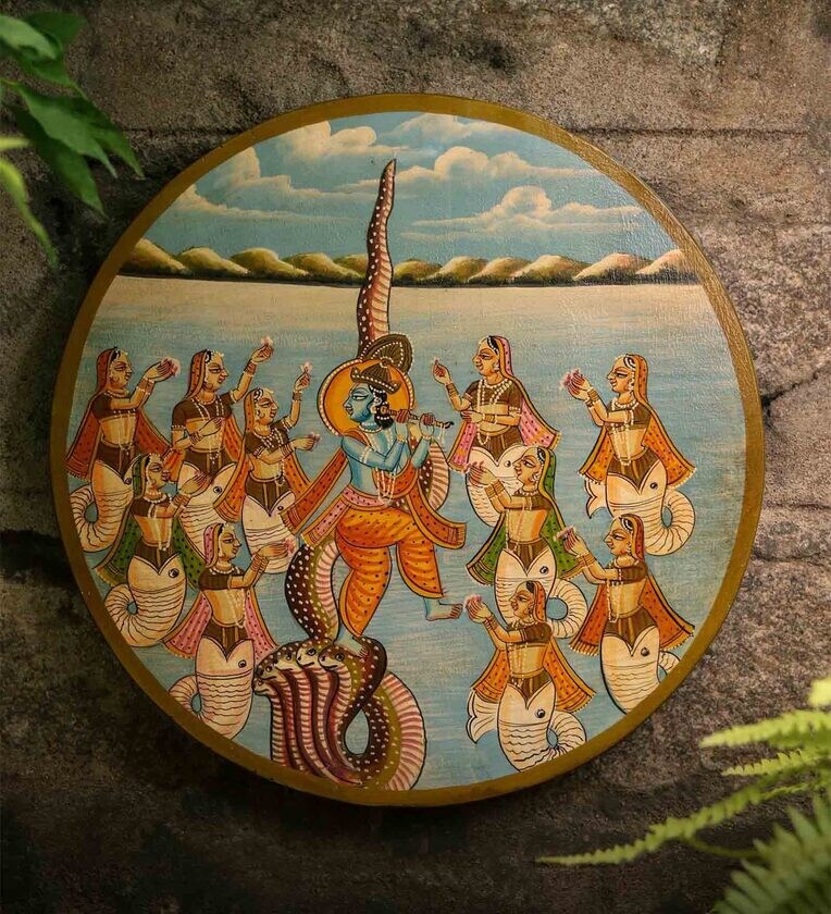 Design a magical story of heritage India on your favorite wall. Our local artisans from Rajasthan are celebrating authenticity of Pichwai Art on Wooden Wall Panels.Pichwai is centuries old rich heritage of Rajasthan depicting beautiful stories of Lord Ganesha. Embrace this bespoke collection at your beautiful home !!! Shop a Story !!! Usage Recommendation : as wall decor, table decor (Indoor purpose) Material : Wooden Size : 16" DiaWall Panal comes with a standard hook hole at the back side to hang on the wall with ease. Disclaimer : Handmade & Handpainted products may have minute imperfections and insignificantly different from each other which make them unique & special. Let's embrace the beauty !!!