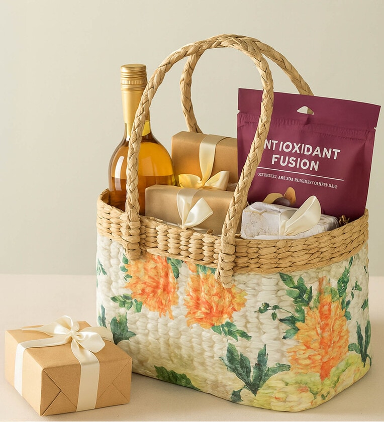 Picnic Baskets,Lunch Bag,Jute/Cane Basket For Gifting (Design 06-L26 X W20 X H18 Cm)