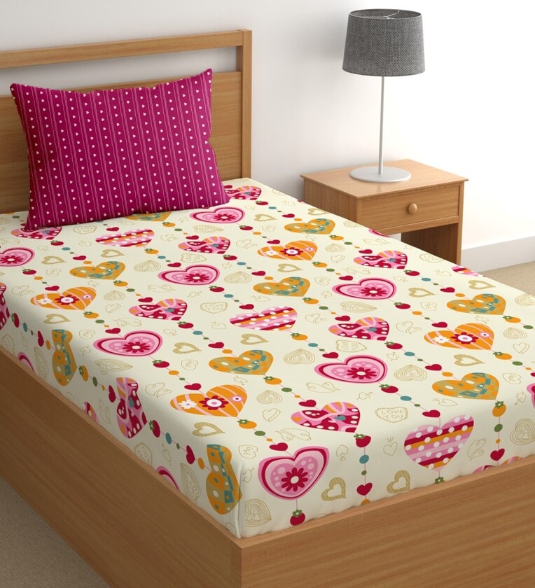 Pink 180 TC Floral Cotton Single Bedsheet Pillow covers
