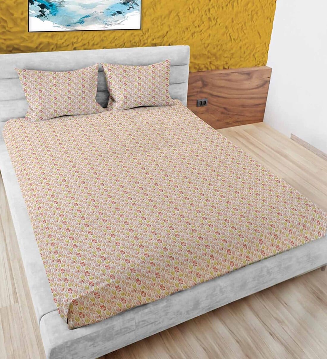 Pink Abstract 180 TC Cotton King Bedsheet with 2 Pillow Covers