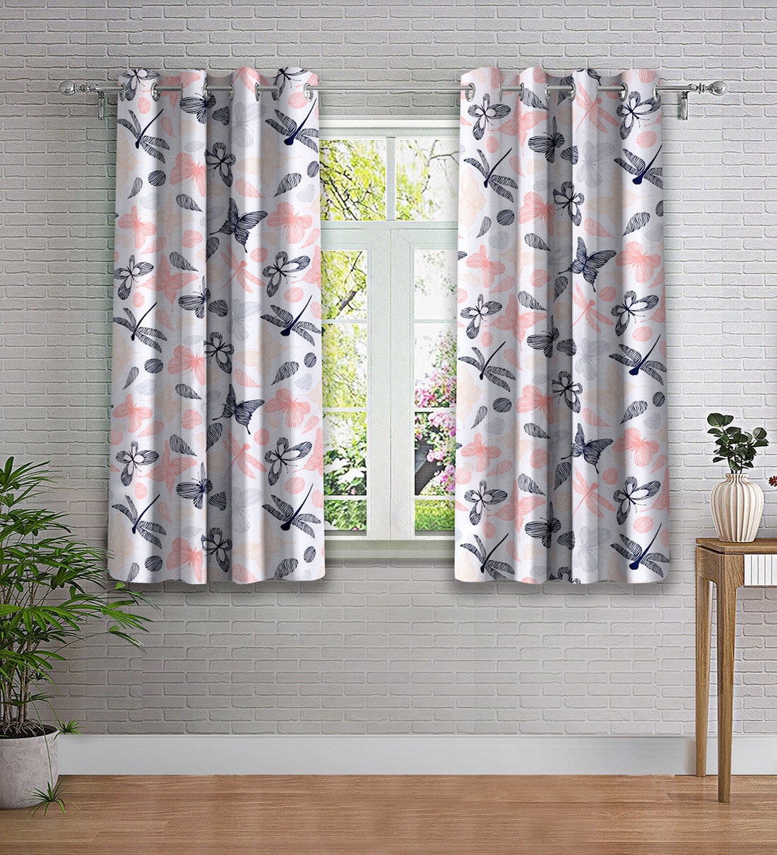Pink Abstract Polyester 5ft Semisheer Eyelet (Set Of 2)