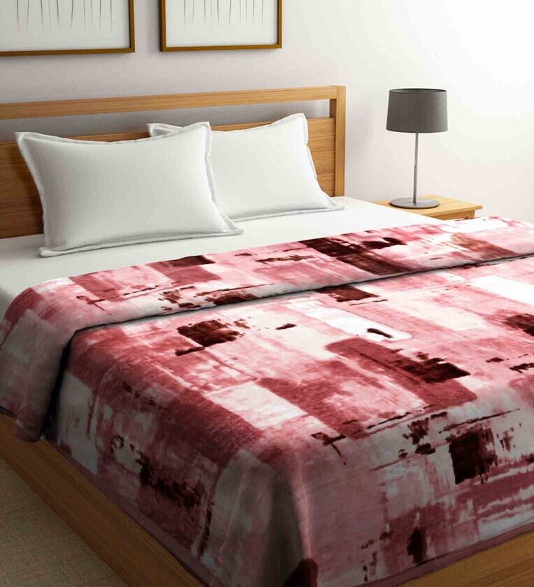 Klotthe Unisex Pink Abstract Heavy Winter 1000 GSM Double Bed Blanket