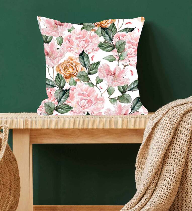 Pink & Green Floral Satin 16 x 16 Inches Cushion Cover