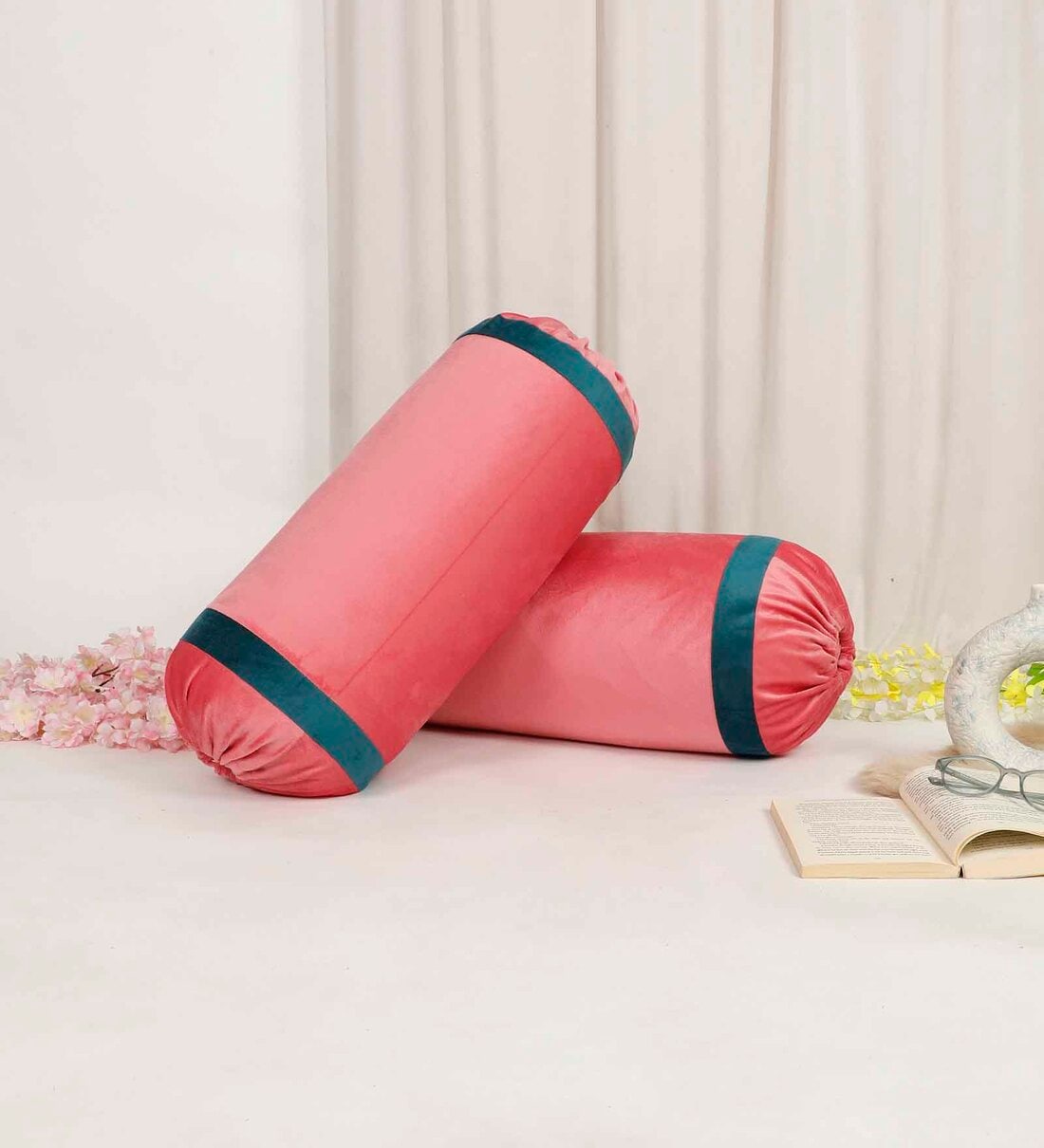 Pink and Teal Stripes TC Velevt 2 Bolster Covers