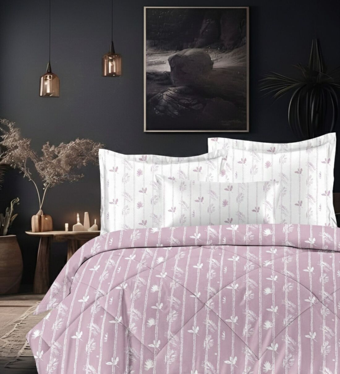 Pink Cotton 210TC Printed All Weather Double 150GSM Bedding Set 1 Comforter 1 Bedsheet 2 Pillow Covers