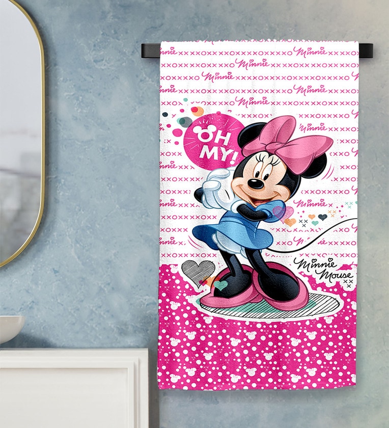 Pink Cotton Disney Minnie 400 GSM Bath Towel (1Pc)