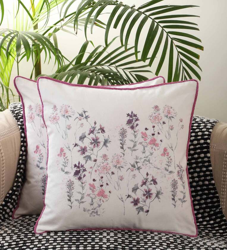 Pink Floral Cotton 18 x 18 Inches Cushion Covers (Pack of 2)