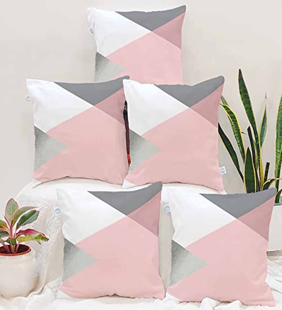 Pink Cotton Geometric 16x16 inches Cushion Covers (Pack of 5)