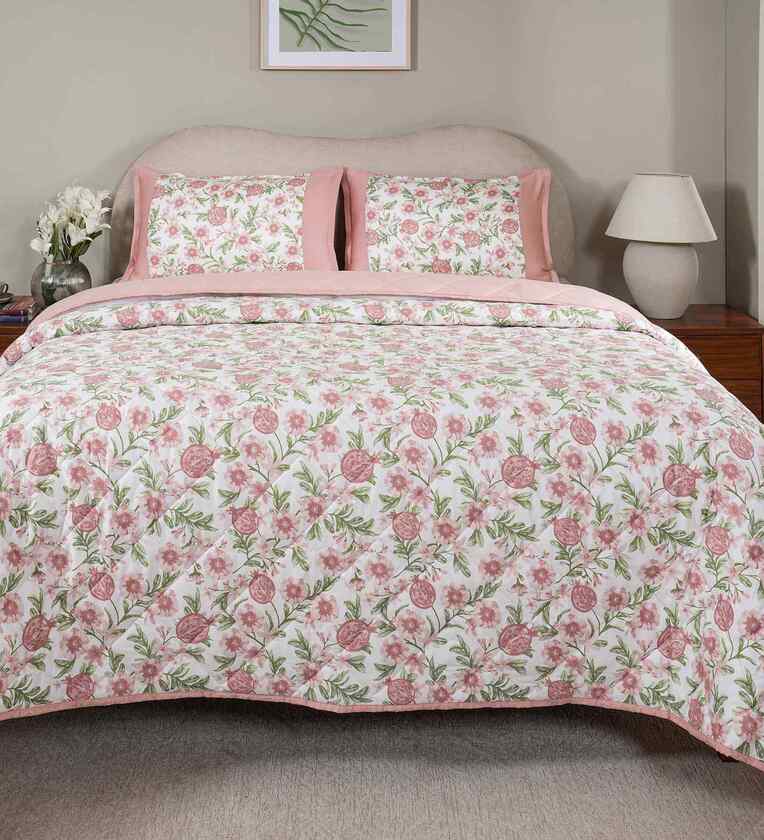 Pink Cotton Polyester Fruit Print 115 GSM Single Bed Quilt