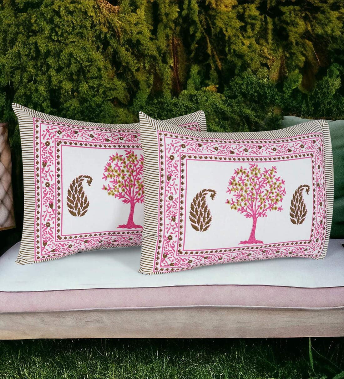 Pink 220 TC Cotton Traditional 28 x 18 Inch inches Pillow Covers (Pack of 2)