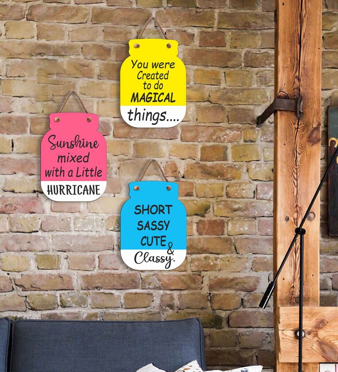 Pink Engineered Wood (Set of 3) Wall Hanging