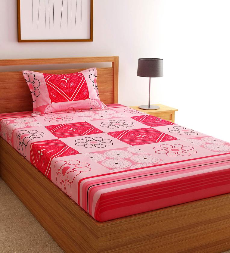 Pink Floral 144 TC Cotton Blend Single Bed Sized Bed Sheets With 1 Pillow Cover