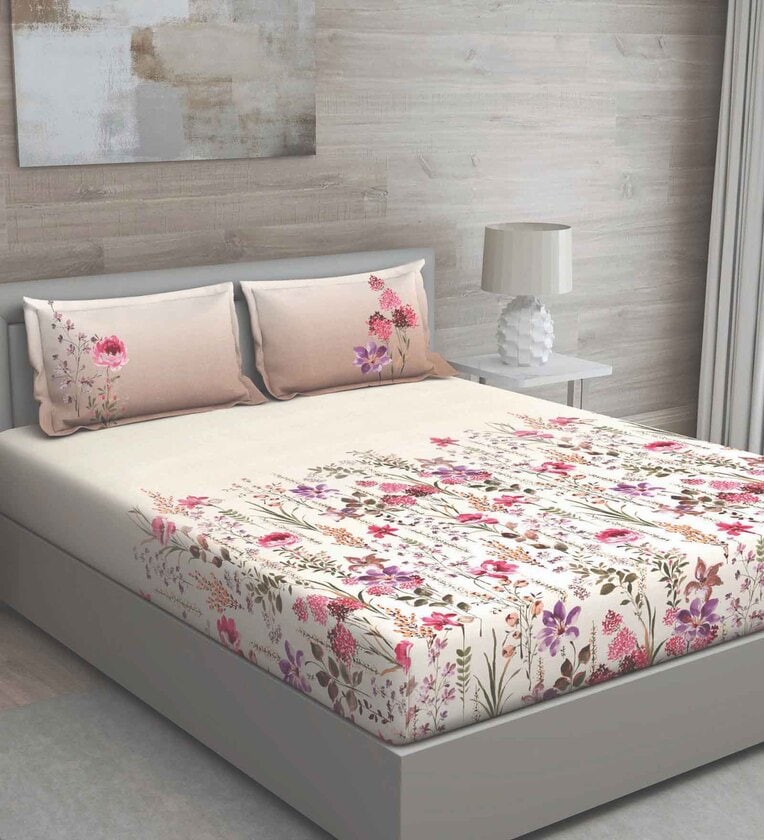 Pink Floral 150 TC Cotton Queen Sized Bed Sheets with 2 Pillow Covers