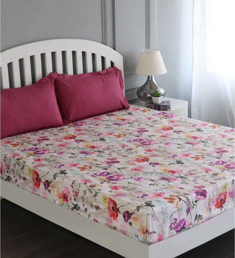 Pink Floral 180 TC Cotton King Sized Bed Sheets with 2 Pillow Covers