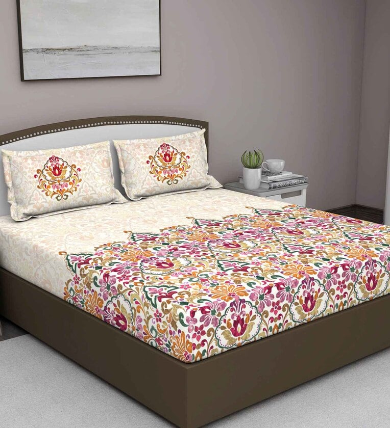 Pink Floral 180 TC Cotton King Sized Bed Sheets with 2 Pillow Covers