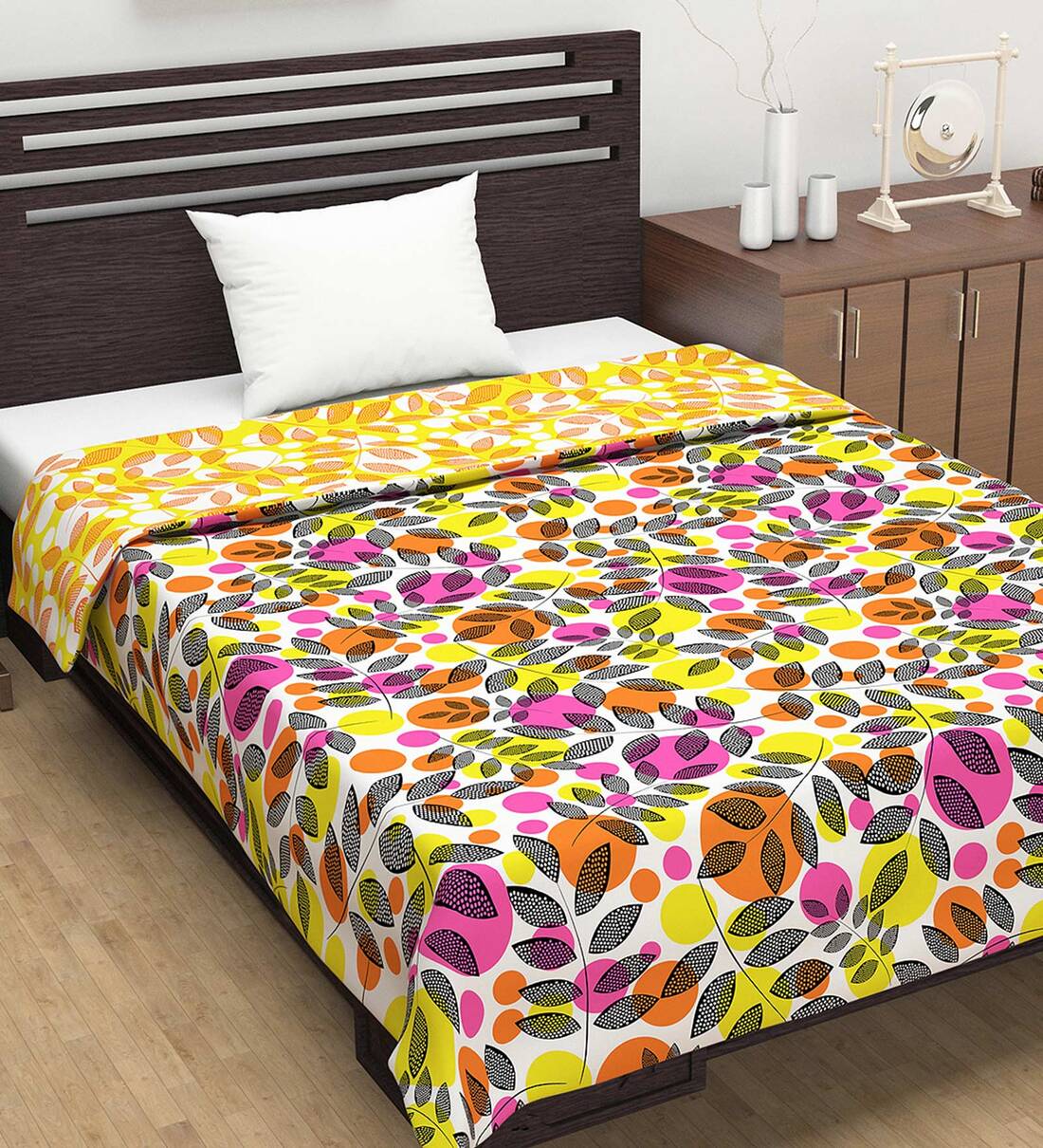 Divine Casa Blue Pink & Yellow Micro Polyester Reversible 120 GSM Floral Single Bed AC Dohar