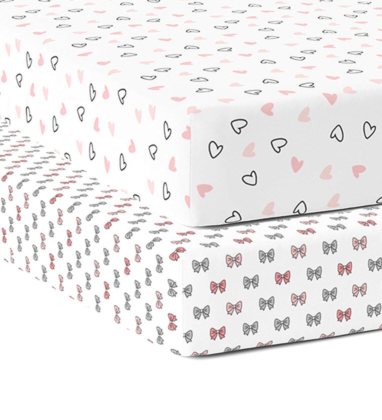 Pink Hearts & Bows 52 x 28 in Organic Cotton Fitted Crib Sheet, Set of 2