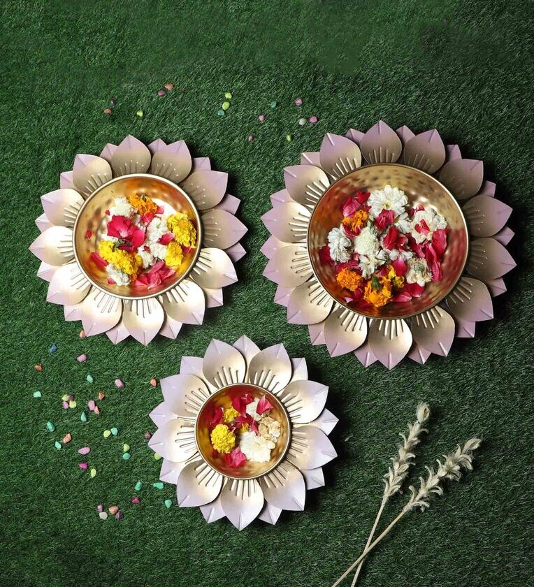 Hammered Baby Pink FLower Urli Set of 3