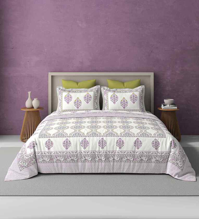 Pink Jaipuri Blockprint 250 TC Pure Cotton King Sized Double Bedsheet with 2 Pillow Covers