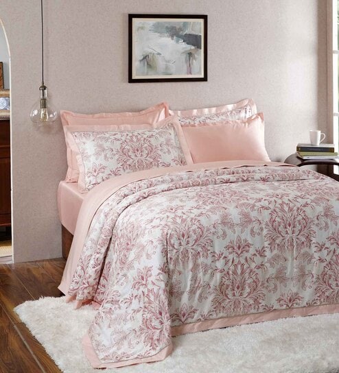 Pink Patterned Cotton Double Bed Duvet Cover with 2 Pillow Covers Tranquil Essence