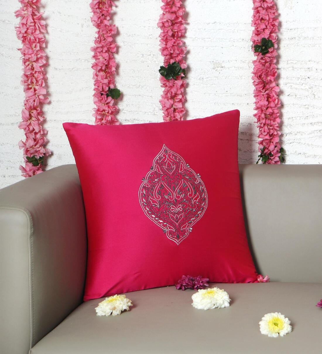 Pink Polyester Traditional 16x16 inches Cushion Covers (1pc)
