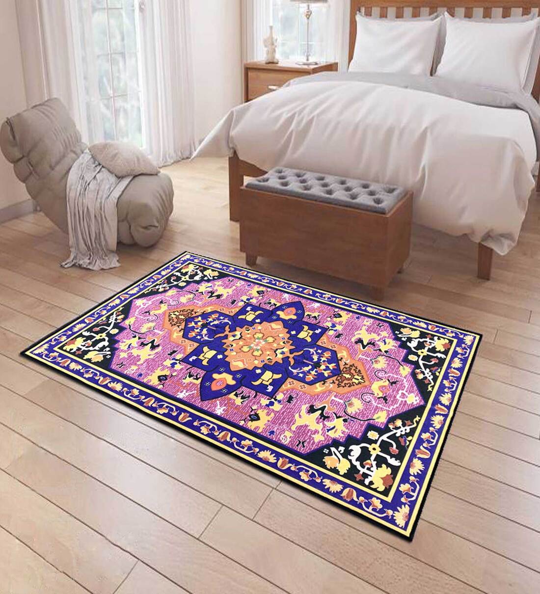 Pink Polyester Vintage 5 x 7 Feet Machine Made Carpet