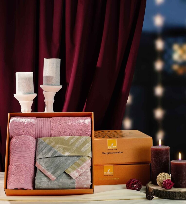 1 Bed Sheet,2 Pillow Covers,2 Bath Towels,1 Box
