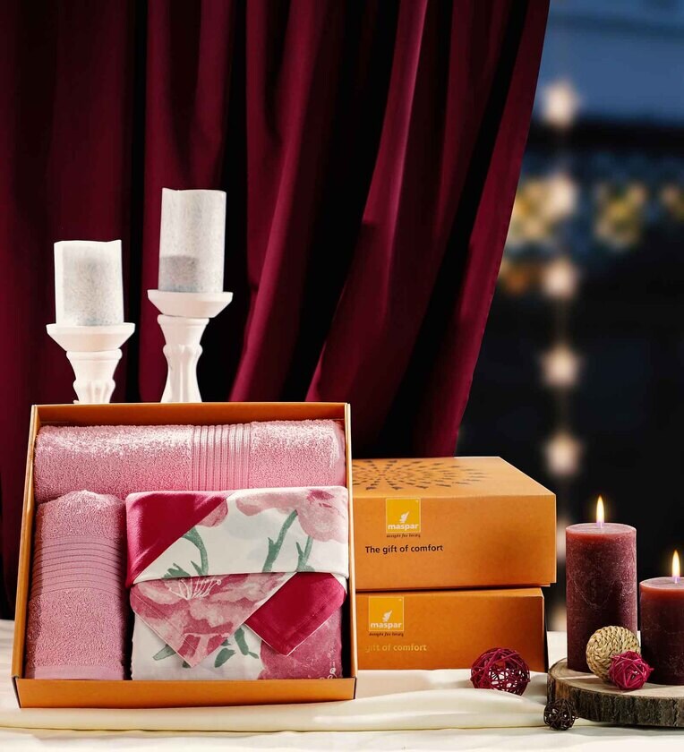 5Pc Bed Bath Set : {1 Bed Sheet (275X275 cm) + 2 Pillow Covers (45X68 cm) +2 Bath Towels (75X150 cm) +1 Box (34.5X34.5X10.5 cm)}