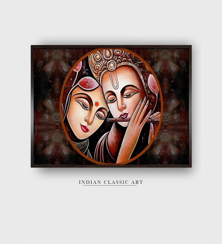 INDIAN CLASSIC ART Brown Pink Radha Krishna Wall Art
