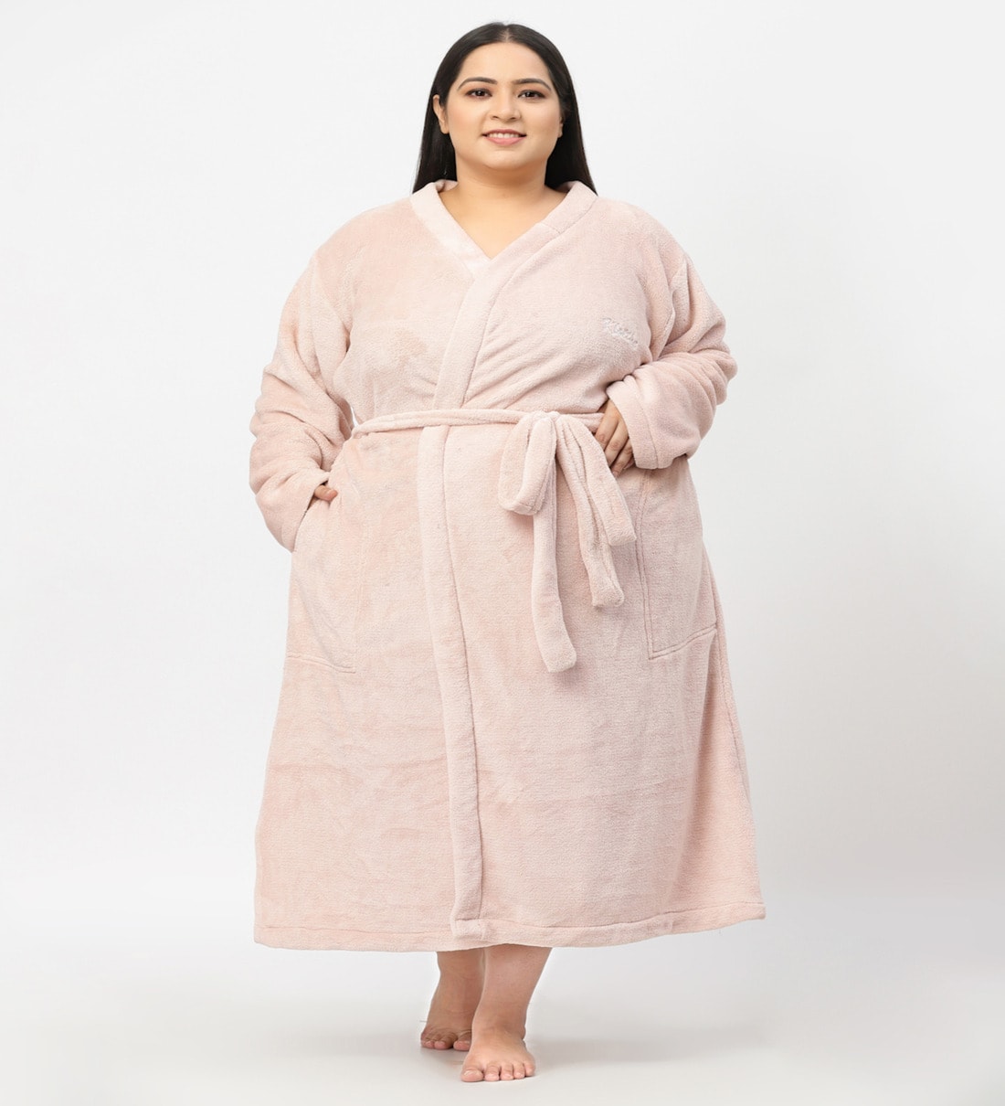 Pink Solid Woolen Women Bath Robe With Belt (XXL)