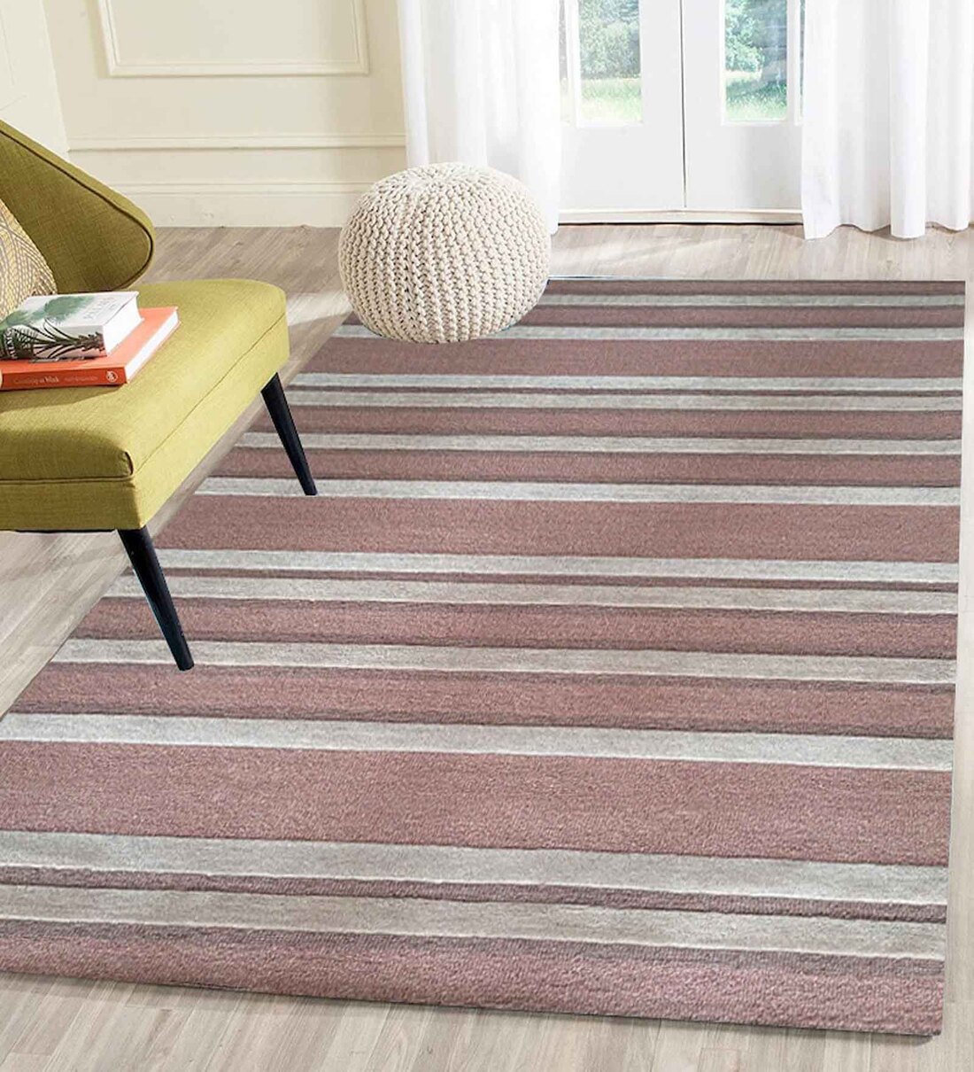 Pink Stripes Wool 5 ft x 7 ft Hand Tufted Carpet