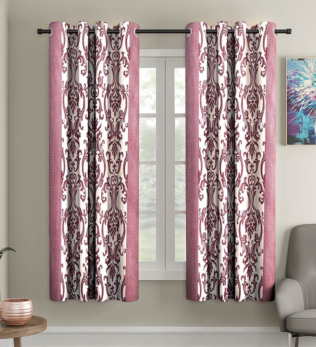 Pink Traditional Polyester 5 Ft Semisheer Eyelet Window Curtains (Set of 2)