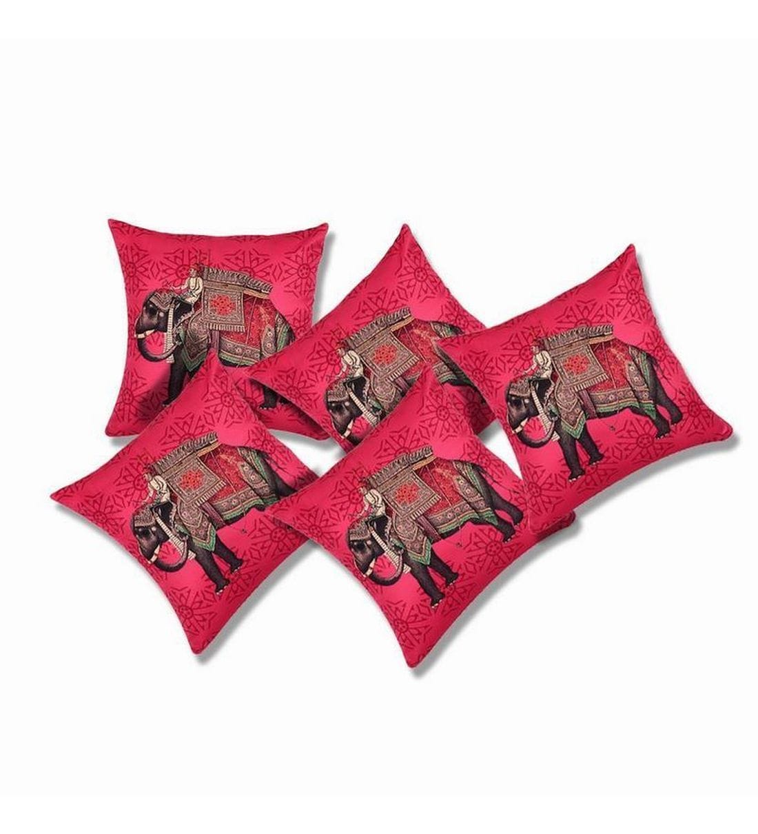 Pink Traditional Silk 16 x 16 Inches Cushion Covers (Set of 5)