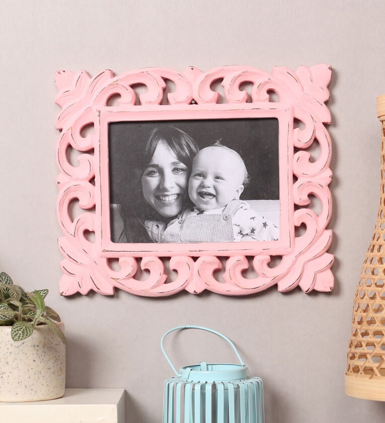 Pink Wooden Handcrafted Horizontal Wall Hanging Photo Frame